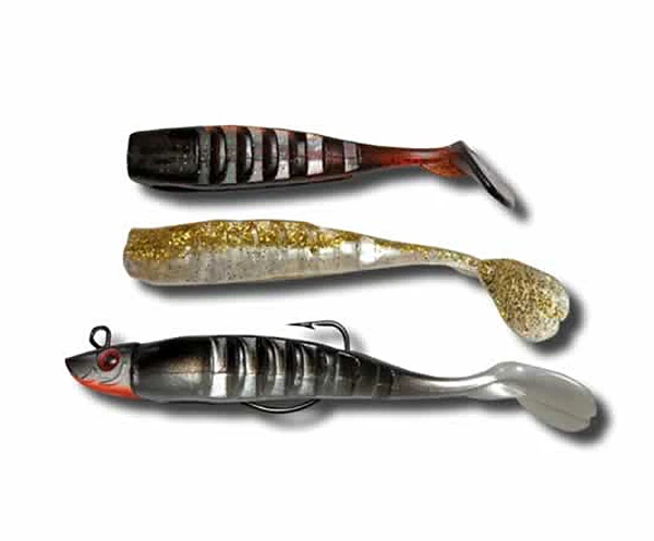 Deze Trendex Flex-Jig is een jighead in de vorm van de kop van een vis, waarmee een shad optimaal gepresenteerd wordt. De loodkop wordt geleverd met 3 passende shads die variëren in kleur en vorm zodat je er voor verschillende vormen en technieken van visserij mee uit de voeten kunt, zoals trollen en verticalen in diep water. De shads zijn langgerekt en voorzien van profiel wat samen met de schoepstaart voor veel turbulentie zorgt. Ideaal setje om mee op jacht te gaan naar snoek, snoekbaars en andere rovers.