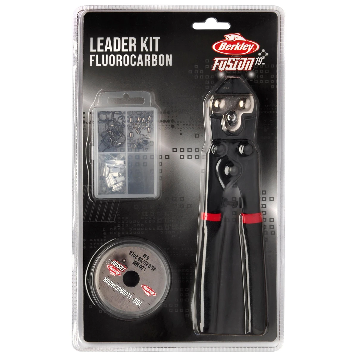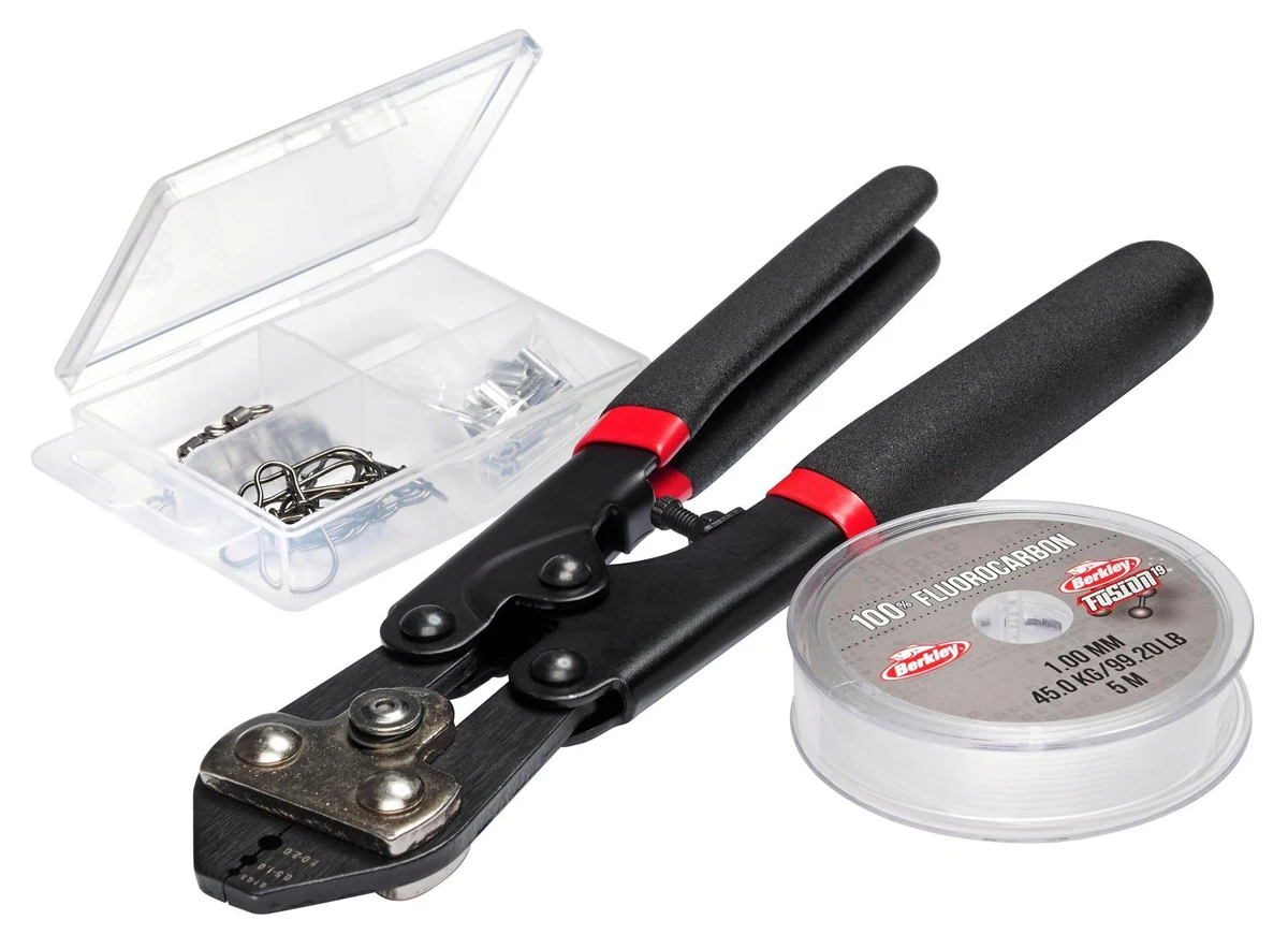 Met de Berkley Fusion19 Leader Kit Fluorocarbon heb je een complete kit voor het op maat maken van je eigen fluorocarbon leaders. De kit is zeer gemakkelijk om te gebruiken, een snoekbestendige onderlijn maken is slechts een paar minuten werk! De kit bevat alles wat je nodig hebt: de meegeleverde sleevetang, leadermateriaal, wartels en crimps garanderen een sterke verbinding met je kunstaas voor je favoriete visserij!