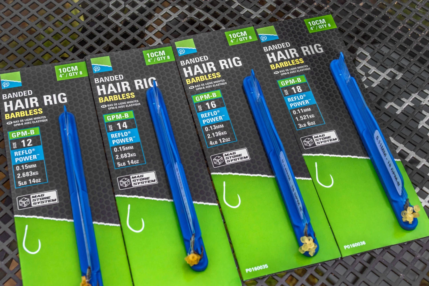 De Preston GPM-B Banded Hair Rigs zijn gemaakt van materialen van de hoogste kwaliteit en gebonden aan nauwkeurige specificaties om rigs te creëren die geschikt zijn voor alle vissers. De volledig geladen rigstick kan rechtstreeks uit de verpakking worden gehaald en in je tacklebox worden geplaatst. Elke verpakking bevat 8 handgebonden rigs die op de rig stick zijn opgeborgen. De haakmaat, de lijndiameter en de breeksterkte zijn gemakkelijk te herkennen aan de bijgevoegde sticker. GPM-B-haken worden op elke rig gebruikt, vastgemaakt aan de beproefde Reflo Power-lijn. Een aasband maakt de rig compleet, waardoor ze geschikt zijn voor hair rigging, pellets of casters. De lengte van 10cm is perfect voor alle F1- en karpervisscenario’s!