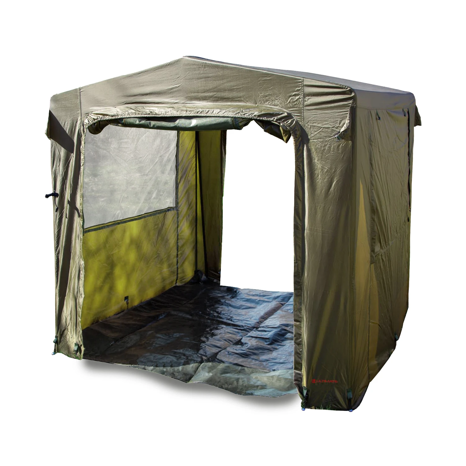 Dit Ultimate Cook & Chill House is perfect voor langere sessies met meerdere personen en kan worden ingezet als keuken, extra opslag of om samen te chillen. De ruime en hoge tent heeft een metalen frame van versterkte buizen met extreme stijfheid en sterkte en is zeer snel op te zetten. Met spanpunten in elke hoek kun je de tent aan de grond bevestigen voor extra stabiliteit en als extra veiligheid tegen windstoten. Dankzij het 3000HH polyester kan er geen spatje water binnendringen en blijf je altijd droog. Aan beide kanten van de tent bevindt zich een ingang en het raam heeft een muggengaas optie. Dit Ultimate Cook & Chill House wordt geleverd inclusief T-haringen voor zwaar gebruik en een stevig en ruim grondzeil.